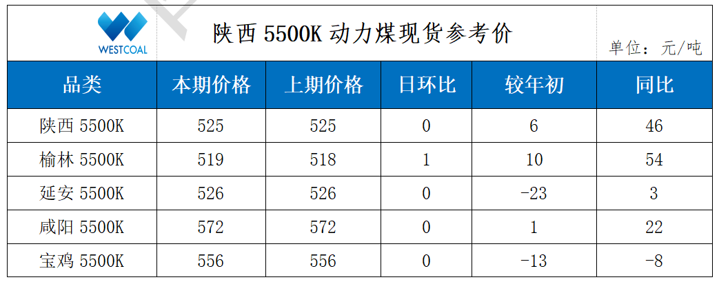 • 陕西5500K动力煤现货参考价