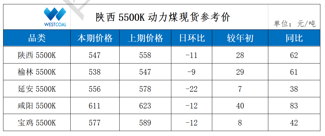 • 陕西5500K动力煤现货参考价