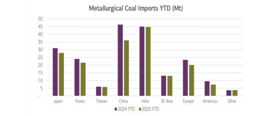 截至8月底,今年以来的全球海运冶金煤发运量累计为1.8亿吨,同比下降13%,凸显了物流中断、矿山关闭和价格疲软对全球冶金煤贸易流通的持续影响。