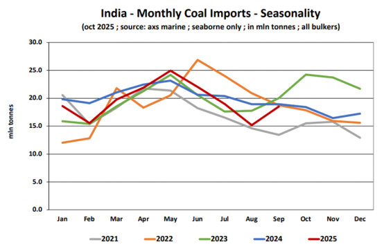 印度是仅次于中国的世界第二大煤炭进口国,其进口量占2025年前9个月全球海上煤炭市场的18.2%。