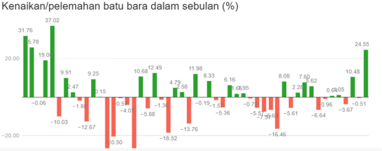 煤炭价格月度涨跌百分比