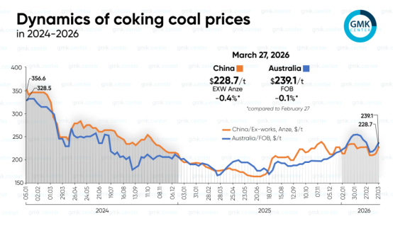 据“JMK中心”(JMK CENTER)4月2日发布的信息,今年3月下旬,受中东冲突引发的运费上涨影响,焦煤市场对这一原材料价格产生反应,导致价格上涨;然而,需求并未支撑这一趋势。