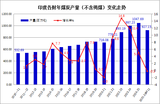 2026年1-2月印度煤炭产量同比增长2.9%