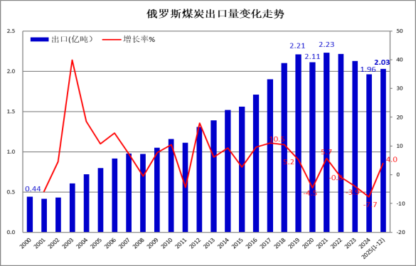 2025年俄罗斯煤炭出口2.03亿吨 同比增长4%