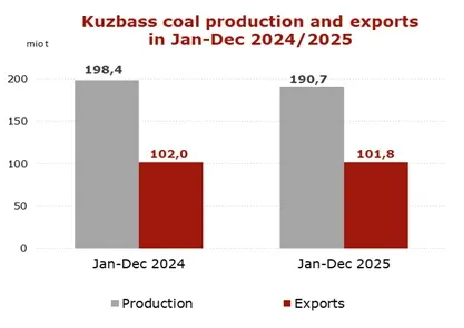 2025年俄罗斯库兹巴斯煤炭产量1.91亿吨,同比下降3.9%