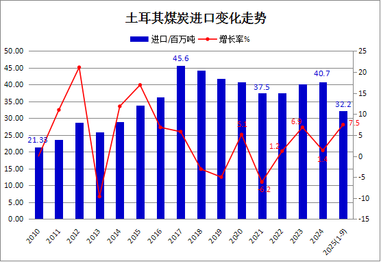 据土耳其外贸统计数据显示,2025年1-9月,土耳其煤炭进口量累计为3215.21万吨,较上年同期增长7.5%。
