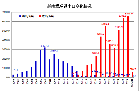 2026年1月越南煤炭进口同比增长23.8%,环比上升27.5%